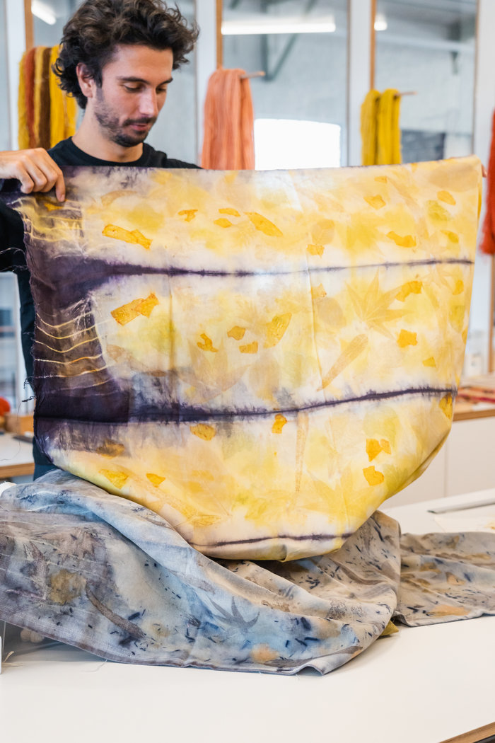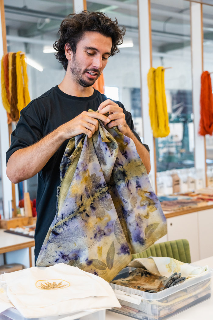 Lesgever Emile Lupatini is onderzoeker aan de Universiteit Antwerpen en experimenteert al jaren met verschillende verftechnieken voor textiel. Je vindt hem regelmatig als vrijwilliger in het textielatelier van het Industriemuseum, waar hij ecoprint demonstreert.