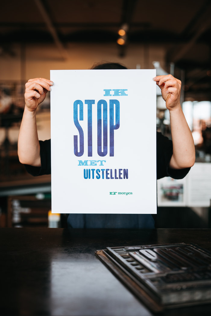 Tevreden van je ontwerp? Dan gaat het richting proefpers waar je je het in één kleur afdrukt. En hup, je gaat naar huis met een unieke A3-poster en goede voornemens om nooit meer te vergeten!