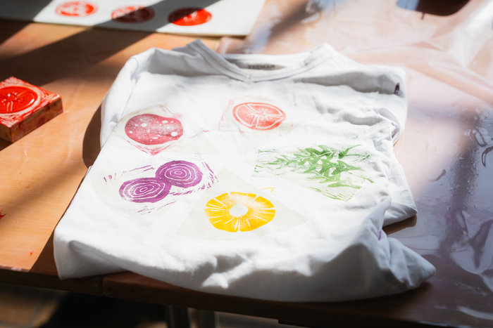 - Een wit of lichtgekleurd T-shirt (of ander stuk textiel) waarop je wil stempelen.