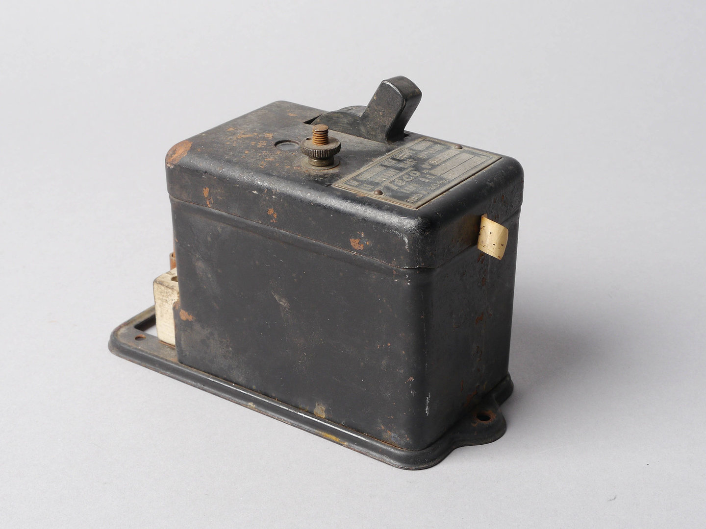 - opschriften: LE COURANT EST COUPÉ QUAND / LE VOYANT VERT APPARAIT / "Téco" N°228249 / TYPE D.B. I / 380 V 50 ~ 10 60 A.