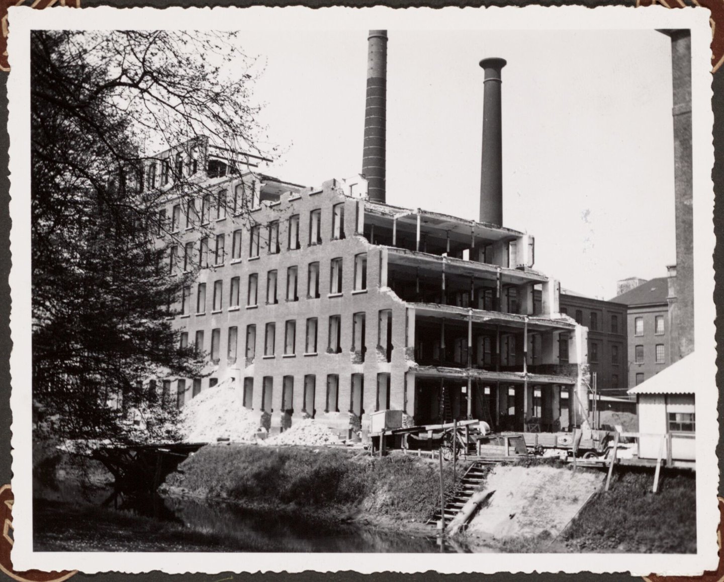 #Gent #fotopapier #textielfabriek #textiel #2de kwart 20ste eeuw #spinnen #vlas #spinnerij #Vlasspinnerij #La Lys nv #industriële architectuur #Brugse Poort - Rooigem #bouw #fabriek #Serck nv #bouwterrein #schoorsteen