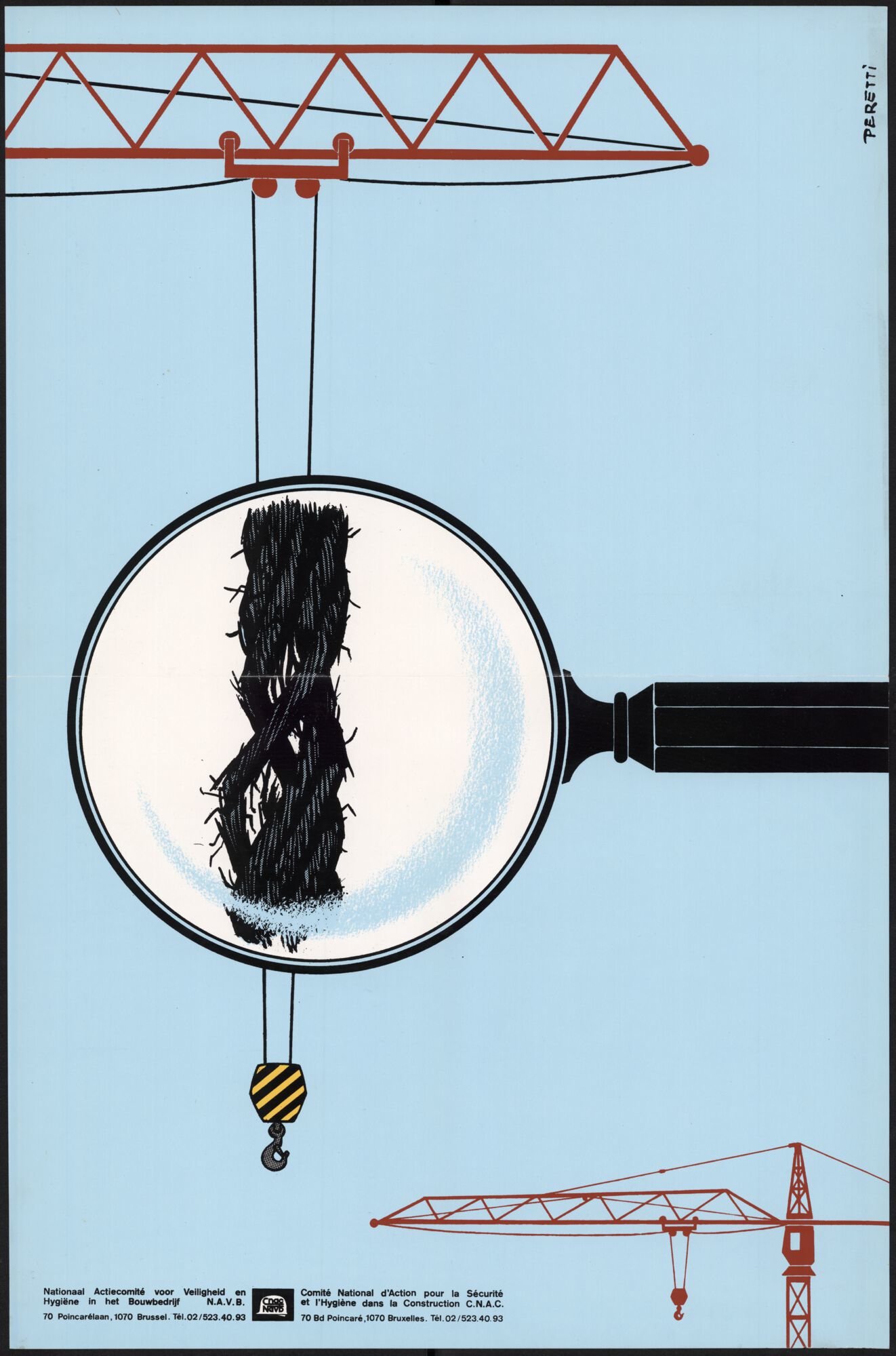 #papier #einde 20ste eeuw #werken #affiche #arbeidsveiligheid en welzijn #Peretti, Calisto #Nationaal Actiecomité voor Veiligheid en Hygiëne in het Bouwbedrijf (NAVB)