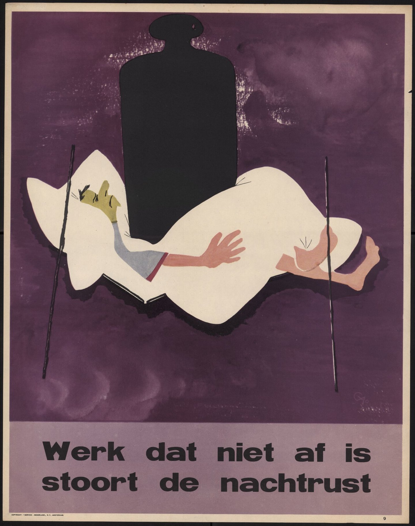 - opschriften: Werk dat niet af is stoort de nachtrust // COPYRIGHT: "SERVICO-NEDERLAND" N.V. AMSTERDAM // 9