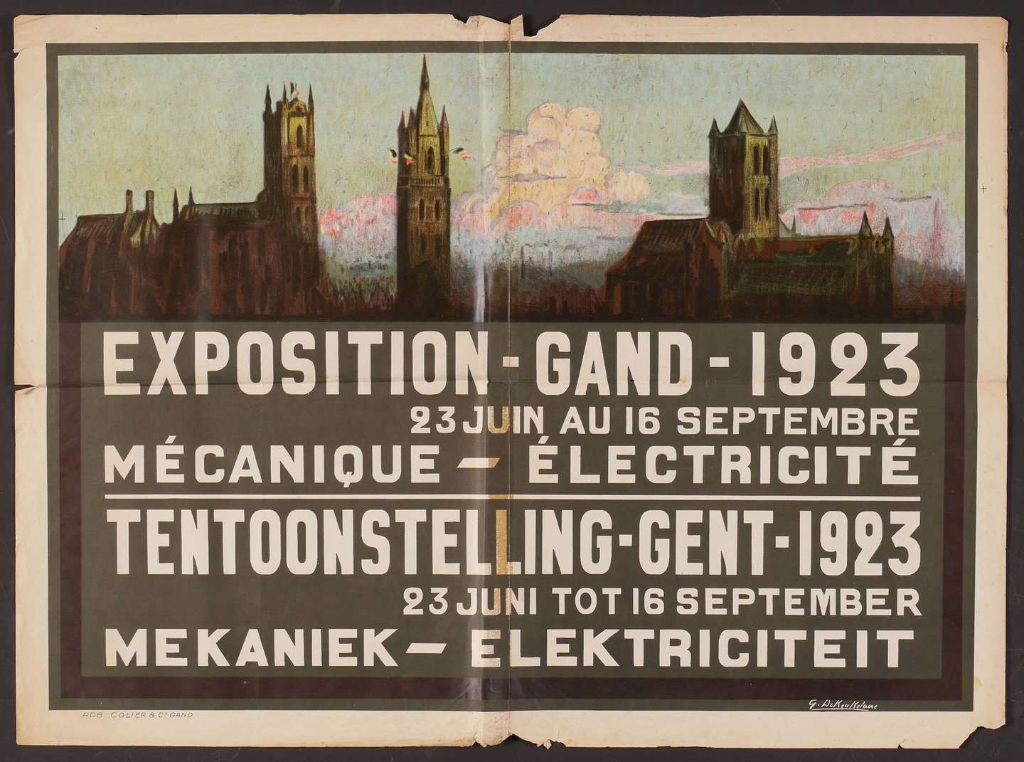 - opschriften: TENTOONSTELLING - GENT - 1923 / 23 JUNI TOT 16 SEPTEMBER / MEKANIEK - ELEKTRICITEIT / G. De Keukelaere / ROB. COLIER & C°. GAND