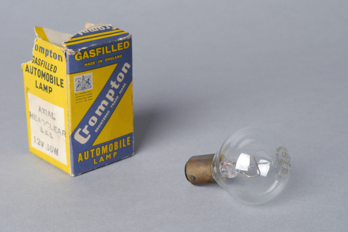 - opschriften: SAFE DRIVING / WITH / Crompton / AUTOMOBILE LAMPS / Motor Car manufacturers / throughout the world / use Crompton lamps. / Precision manufacture / ensures a long useful life / with perfect light control / all the light concentrated / where you want it. /
