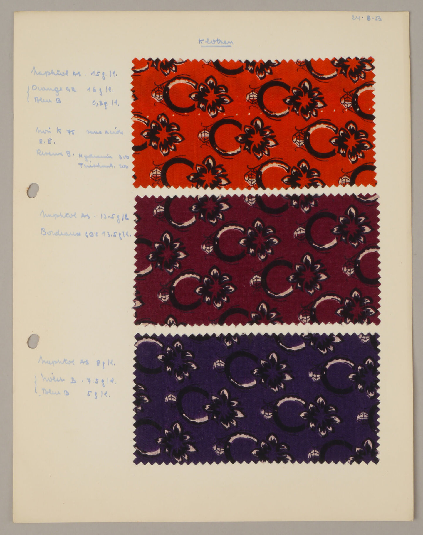 #Gent #papier #textiel #3de kwart 20ste eeuw #grondstoffen en stalen #textielveredeling #vlakke textielstalen #textieldruk #staalkaart #Destelbergen #Teintures et Apprêts de l'Escaut SA (TAE)