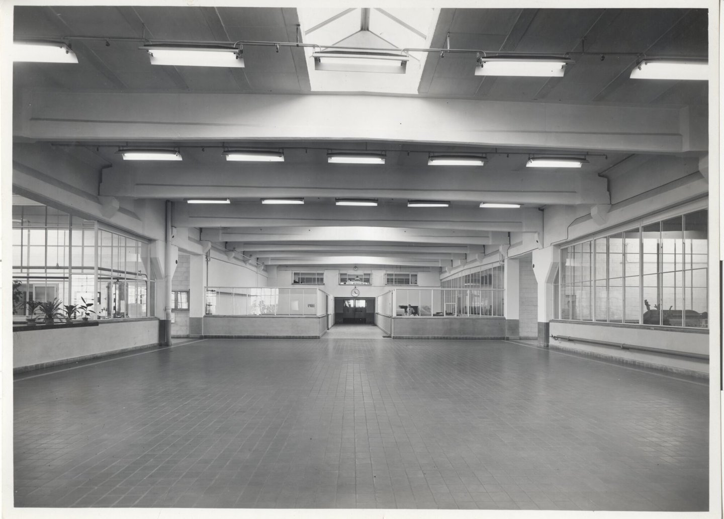 Inkomhal van textielfabriek Cotonnière E.J. Braun, gelegen in de Maïsstraat in Gent. Later stonden in deze ruimte de bureaus van de technisch bedienden.