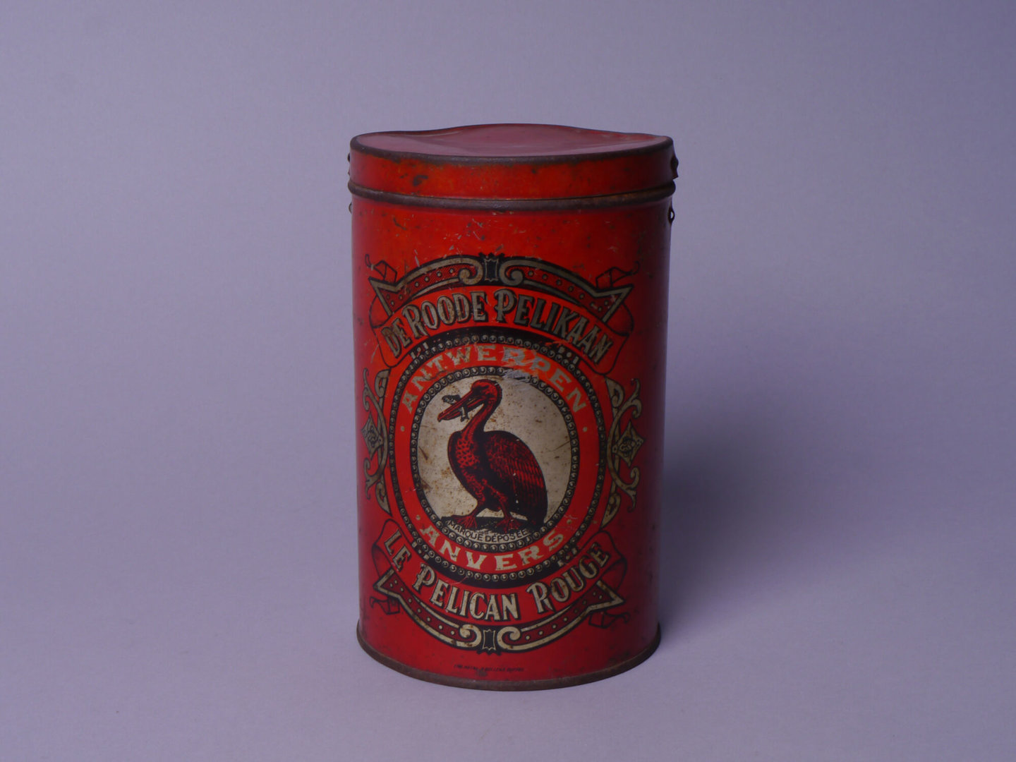 - opschriften: DE ROODE PELIKAAN / ANTWERPEN // DEZE MERKWAARDIGE KOFFIE IS WEL DE / SMAKELIJKSTE TER WERELD. / DE VERZEGELDE BLIKKEN DOOS VAN 1/2 KILO / NETTO SCHENKT U WAARBORG VOOR OORSPRONG, / VERSHEID, KWALITEIT, GEUR EN GEWICHT / "DE ROODE PELIKAAN" / ANTWERPEN-ZU