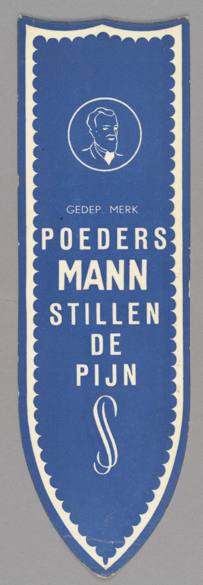 - opschriften: GEDEP. MERK / POEDERS MANN / STILLEN DE PIJN