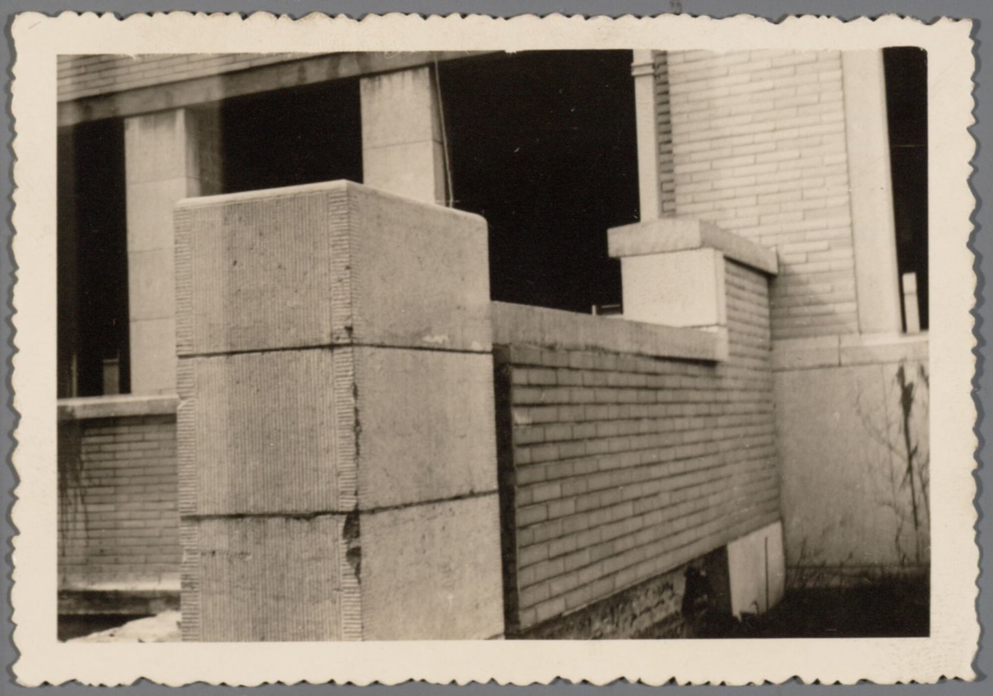Zicht op de bouwwerf van het Academisch Ziekenhuis, nu Universitair Ziekenhuis, gelegen aan Corneel Heymanslaan 10 in Gent. Het gebouw is door bouwfirma Serck nv opgetrokken.