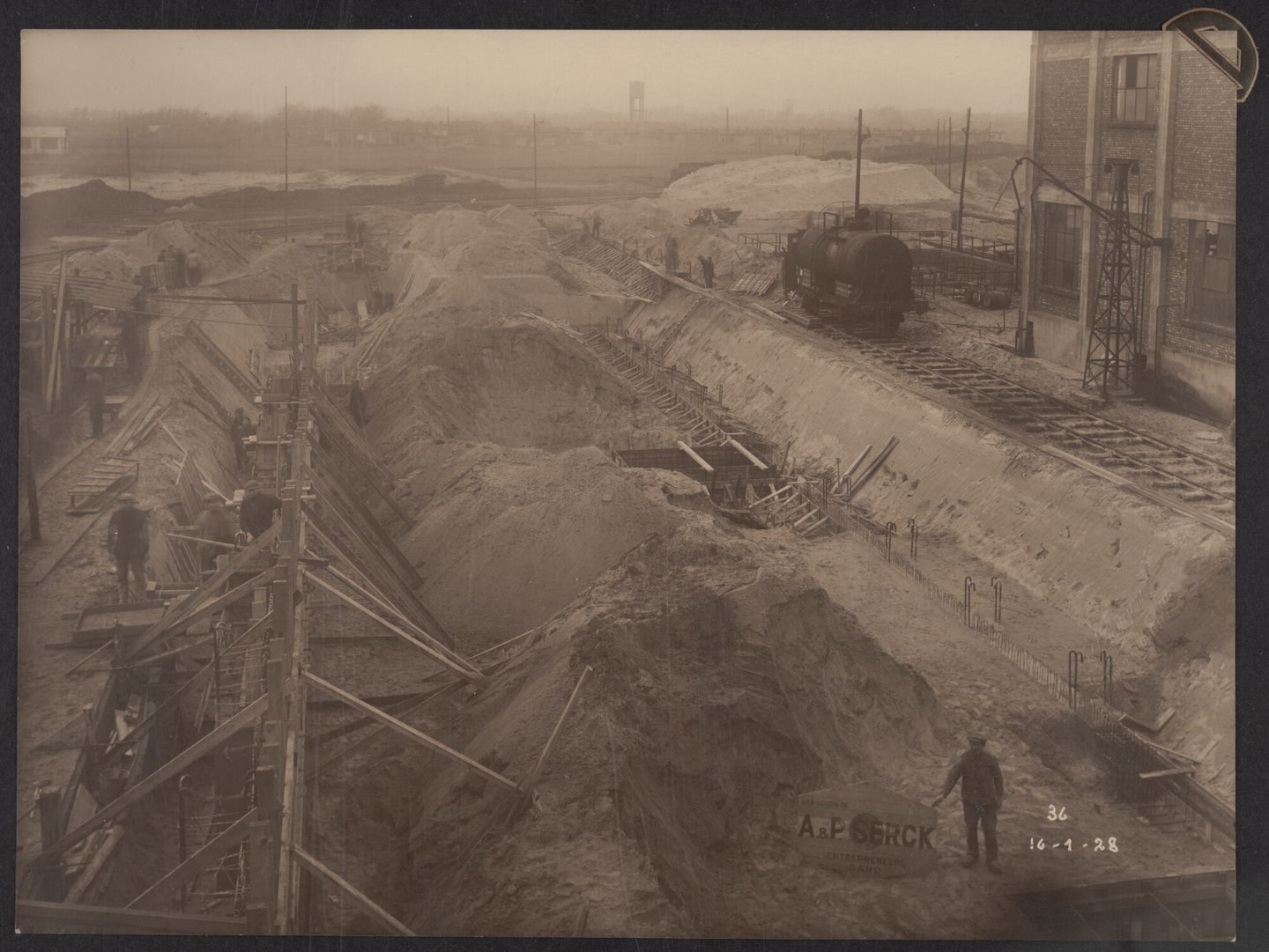 #fotopapier #2de kwart 20ste eeuw #chemie #industriële architectuur #magazijn #bouw #fabriek #Serck nv #bouwterrein #spoorlijn #Zelzate #cokesfabriek #Kuhlmann
