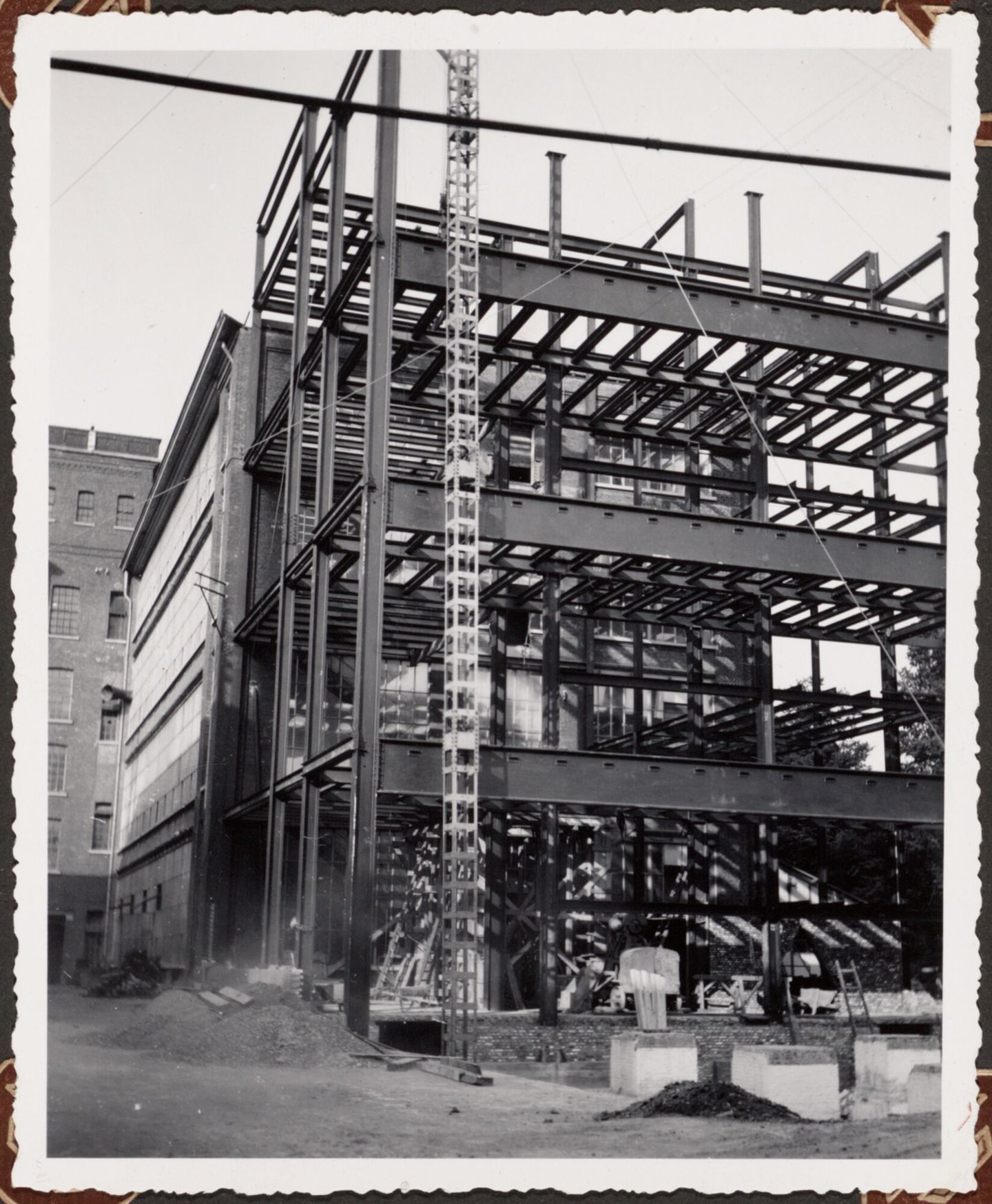 #Gent #fotopapier #textielfabriek #textiel #2de kwart 20ste eeuw #spinnen #vlas #staal #spinnerij #Vlasspinnerij #La Lys nv #kraan #industriële architectuur #Brugse Poort - Rooigem #bouw #fabriek #Serck nv #bouwterrein