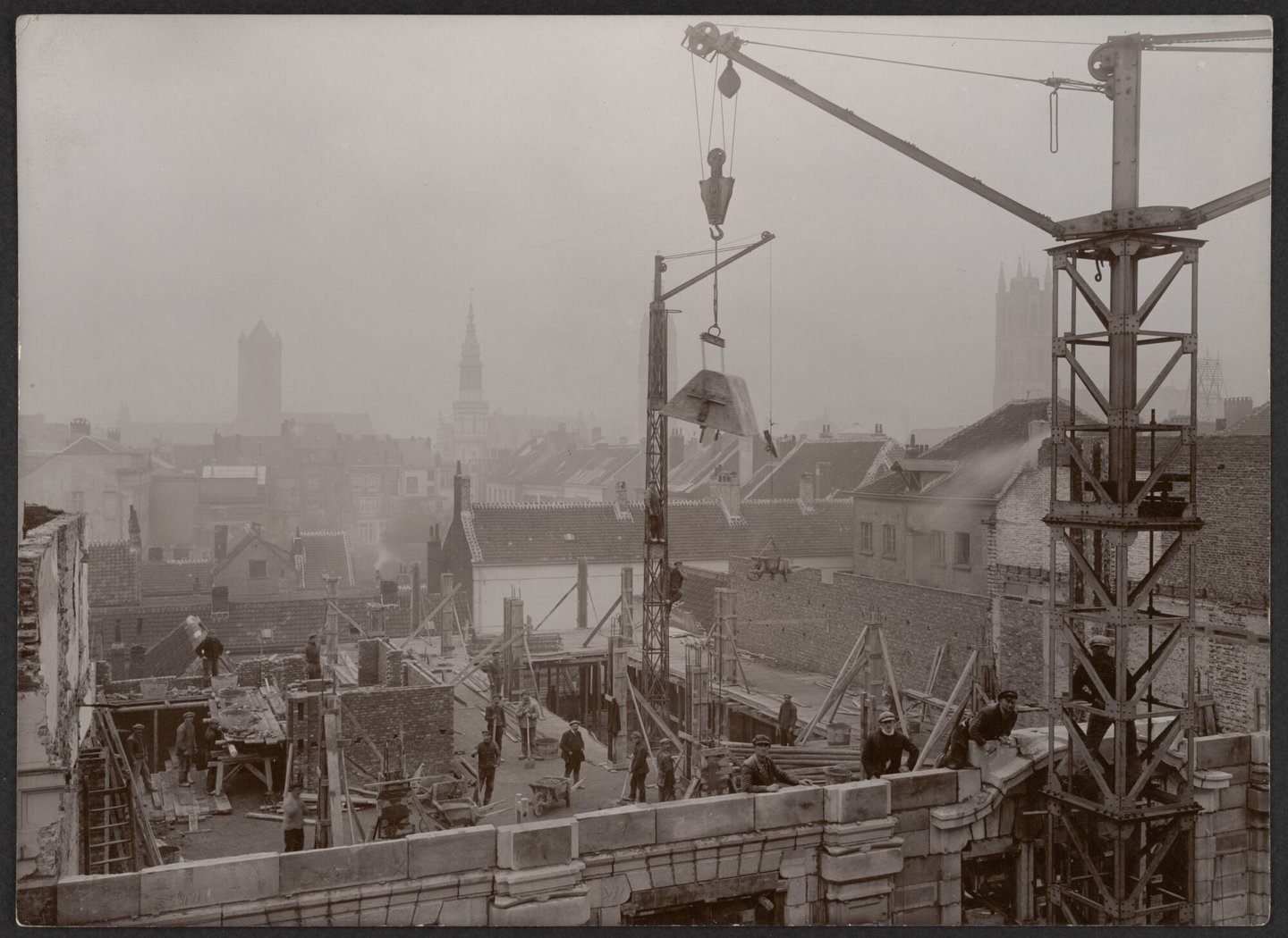 #Gent #fotopapier #textiel #winkel #begin 20ste eeuw #handel en distributie #kleinhandel en retail #kraan #Binnenstad (Gent) #bouw #Serck nv #bouwterrein #Tytgat, Jules #kruiwagen #herenhuis #Franchomme & Cie