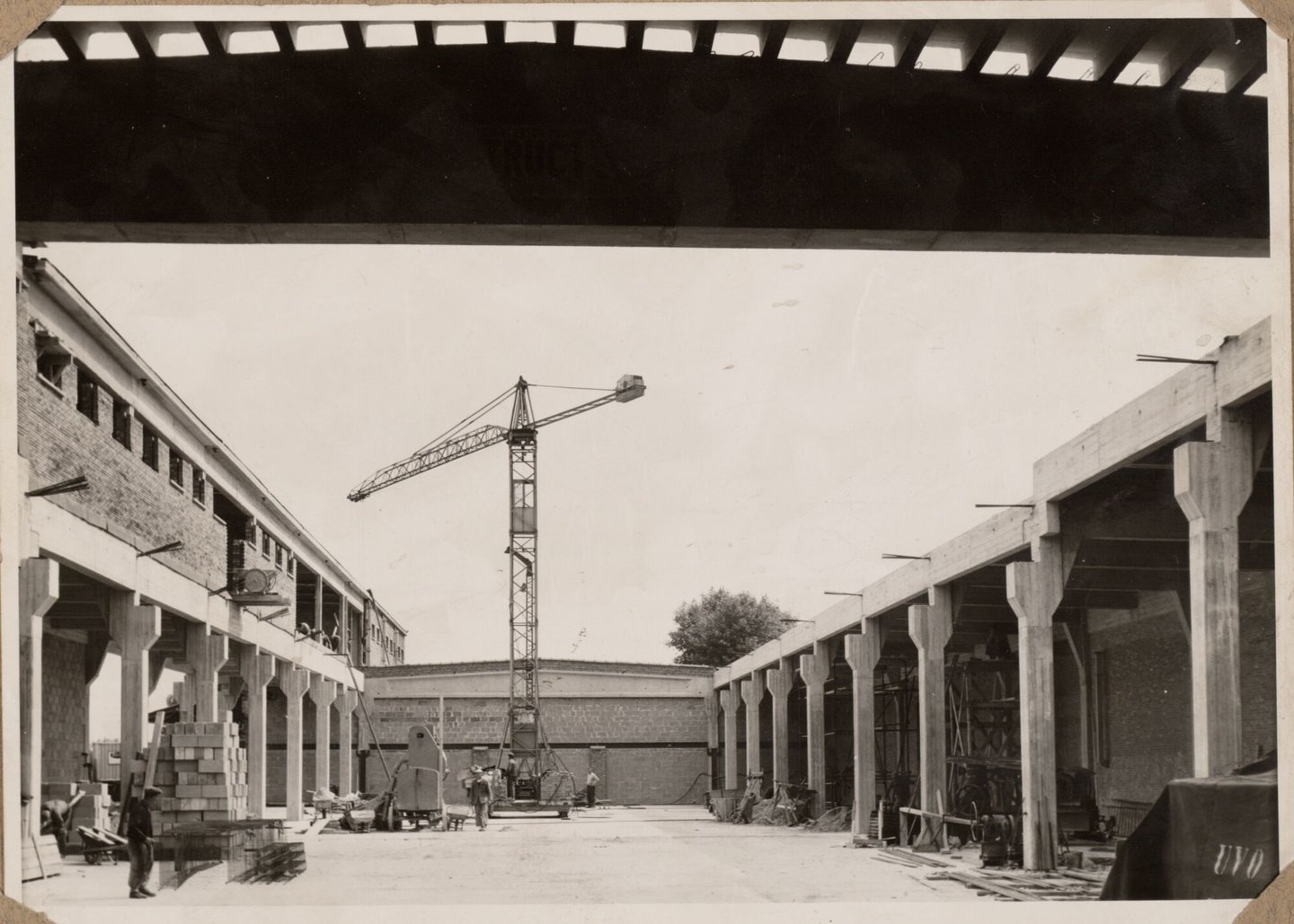 #Gent #fotopapier #textielfabriek #textiel #20ste eeuw #nylon #spinnerij #kraan #industriële architectuur #Fabelta nv #Zwijnaarde #bouw #fabriek #Serck nv #bouwterrein #kruiwagen