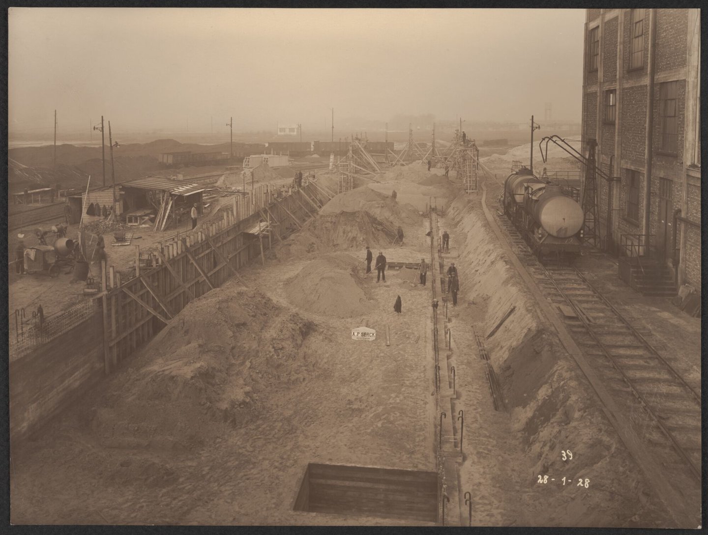 #fotopapier #2de kwart 20ste eeuw #reclamebord #chemie #industriële architectuur #magazijn #bouw #fabriek #Serck nv #bouwterrein #spoorlijn #Zelzate #cokesfabriek #Kuhlmann