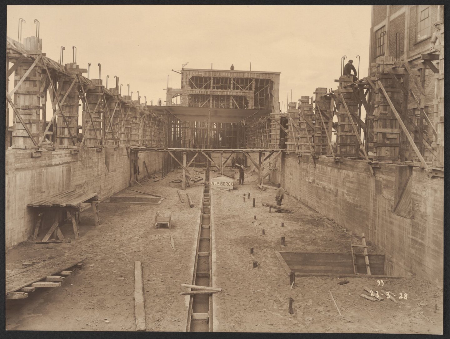 #fotopapier #2de kwart 20ste eeuw #reclamebord #chemie #industriële architectuur #magazijn #bouw #fabriek #Serck nv #bouwterrein #Zelzate #cokesfabriek #Kuhlmann