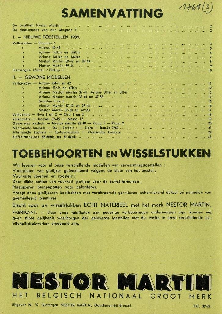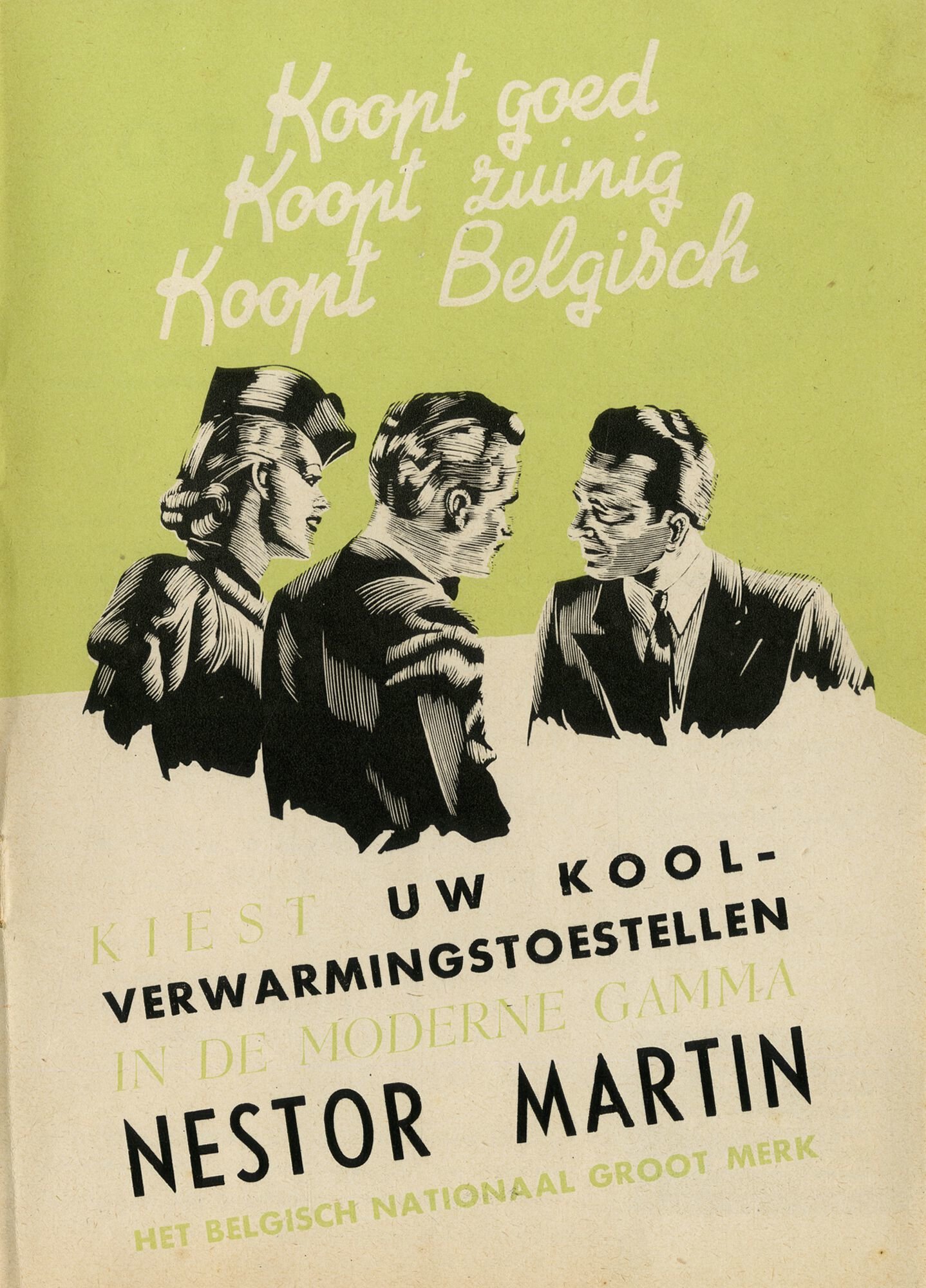- opschriften: Koopt goed / Koopt zuinig / Koopt Belgisch / Kiest uw kool-verwarmingstoestellen / in de moderne gamma / NESTOR MARTIN / HET BELGISCH NATIONAAL GROOT MERK