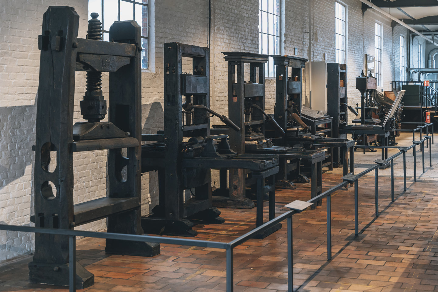 De rijke en unieke drukkerijcollectie van het Industriemuseum onthult het verhaal van drie eeuwen grafische industrie, van A tot Z. Van een 18e-eeuwse houten handpers over de iconische Heidelberg en Linotype, tot de hedendaagse computer. De drukkerijcollectie is, naast de textielcollectie, de omvangrijkste deelcollectie van het Industriemuseum. Haar sterktes zijn de samenhang vanuit technisch en historisch oogpunt, de op internationaal vlak uitzonderlijke stukken en het feit dat de machines nog steeds worden gebruikt. Het museum legt zich toe op de industriële periode. Met deze chronologische afbakening sluit het collectiebeleid aan op dat van Museum Plantin-Moretus, die met zijn collectie op de 16e, 17e en 18e eeuw focust.