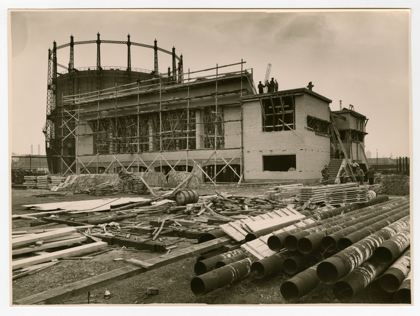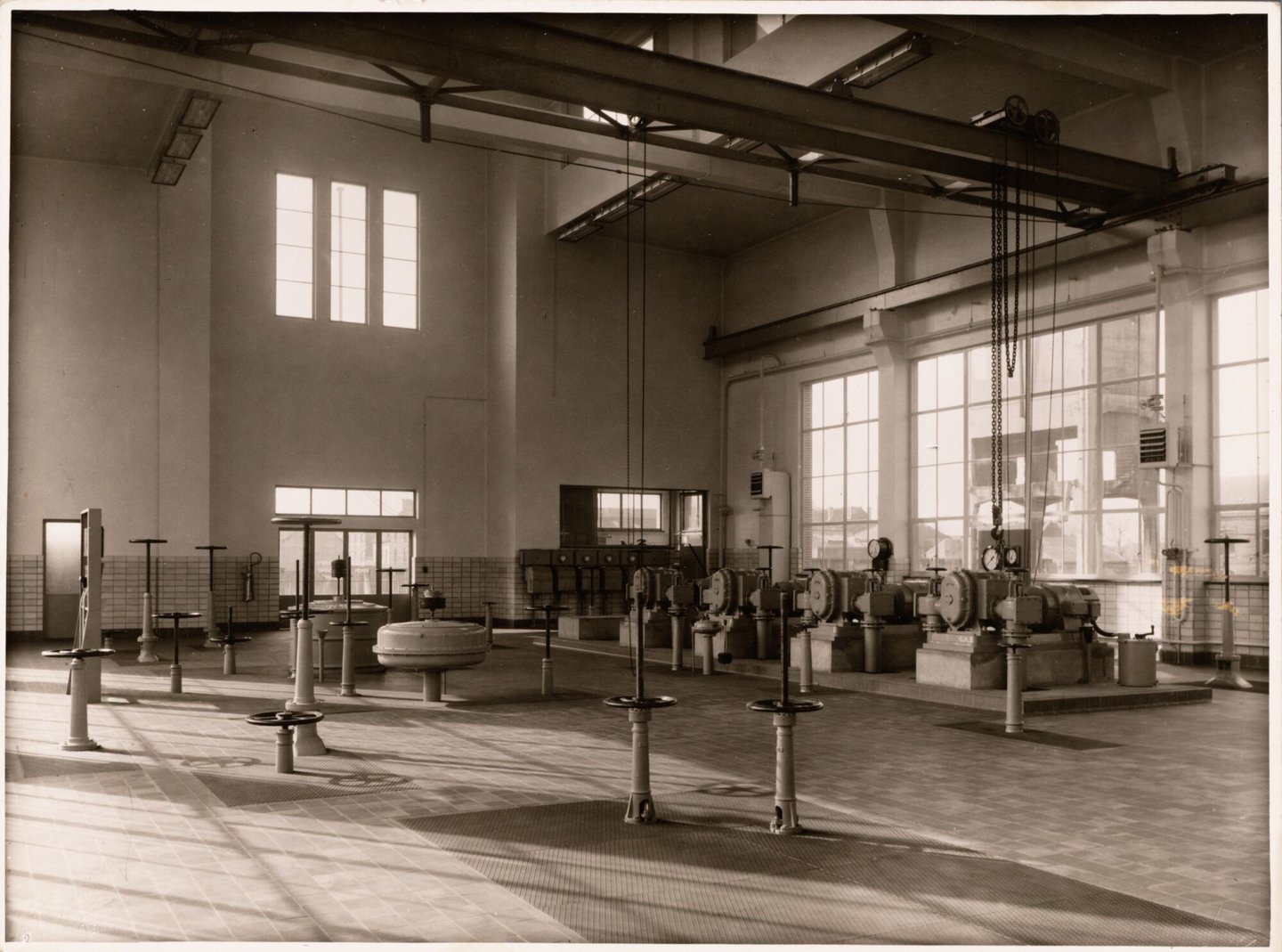 Op de Gasmeterlaan wordt in 1951 nog een nieuwe machinezaal, voorzien van compressoren voor de gasdistributie naar verder gelegen wijken. Het modernistische gebouw van de hand van de bekende Gentse architect Georges Bontinck verdwijnt in 2016 onder de sloophamer. Collectie Industriemuseum.