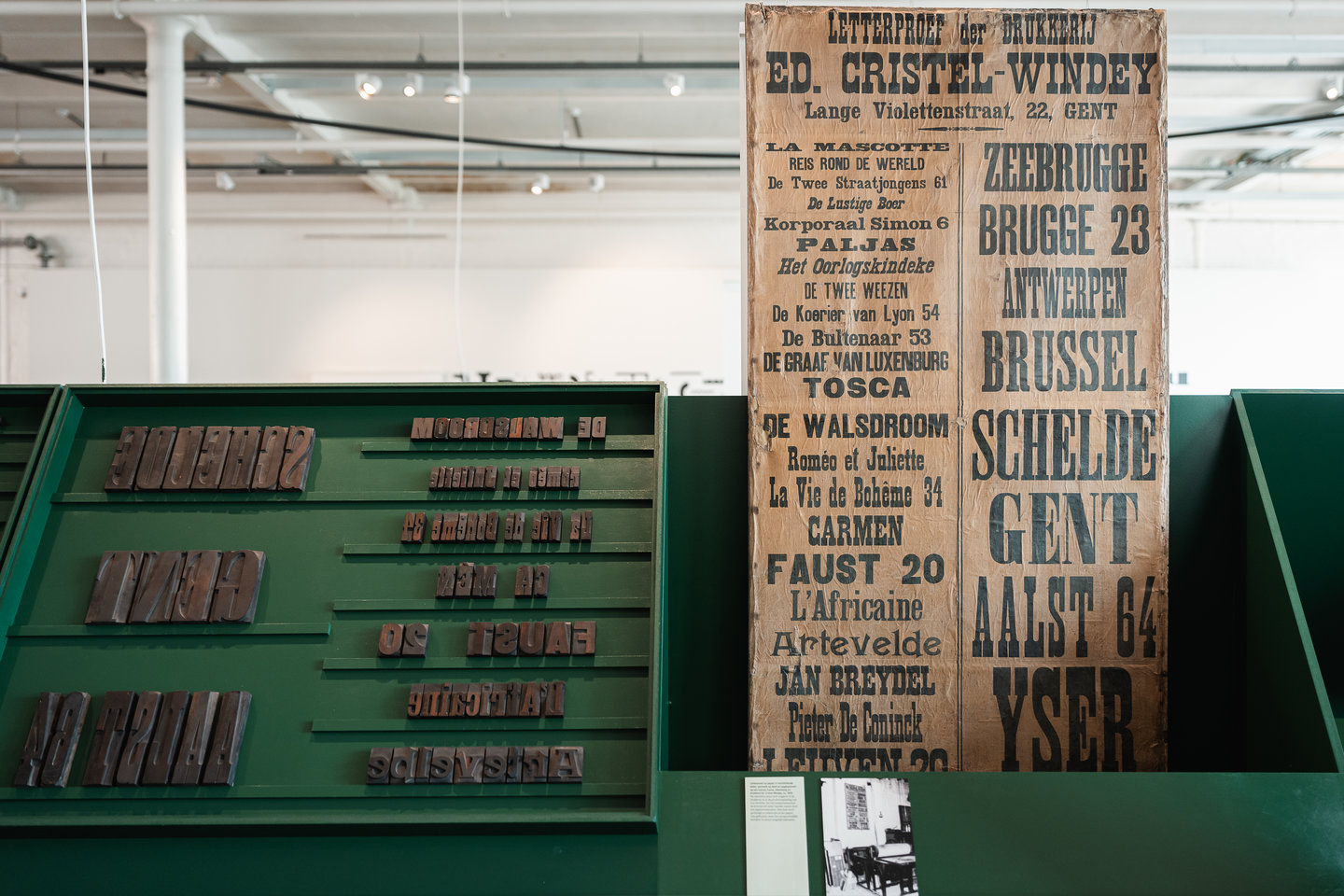 Een bijzondere parel in de museumcollectie is de imposante letterproef uit drukkerij Ed. Cristel-Windey, samen met de bijhorende kasten met houten letters. Verzamelaar Luc Strobbe wist deze stukken in 1985 op de kop te tikken bij het stopzetten van de drukkerij en verkocht ze in 2019 aan het Industriemuseum.