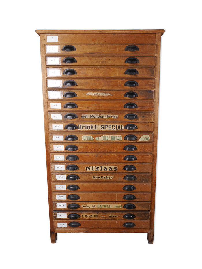 De inventaris is opgedeeld per letterpolis. Dat is een set letters in één bepaald lettertype en grootte, bestaand uit kapitalen (hoofdletters), soms ook onderkasten (kleine letters), cijfers en leestekens. De collectie houten letters bevat ruim 300 verschillende polissen, waarvan er zo’n 100 intensief gebruikt worden in het drukatelier. Er zijn ook tal van ornamenten zoals decoratieve randen, hoeken en vormen om drukwerk een opvallend ontwerp te kunnen geven.