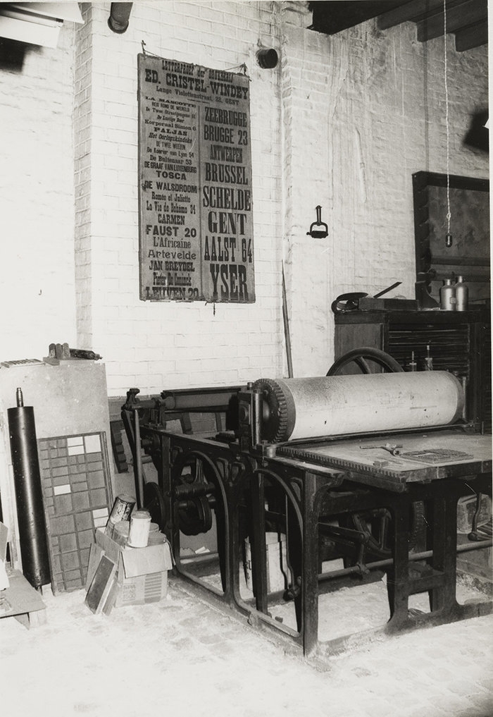 Foto genomen in drukkerij Cristel et fils door R. Pollie in opdracht van verzamelaar Luc Strobbe, 1984. Collectie Industriemuseum, F10913-017