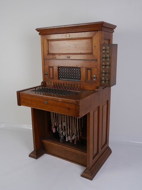- De abonnee die de oproep start neemt de hoorn van de haak en draait aan een kleine hendel of inductorkruk. Dit is een soort dynamo die net voldoende stroom opwekt om in de telefooncentrale een belsignaal te geven. Dit is het opbellen.
