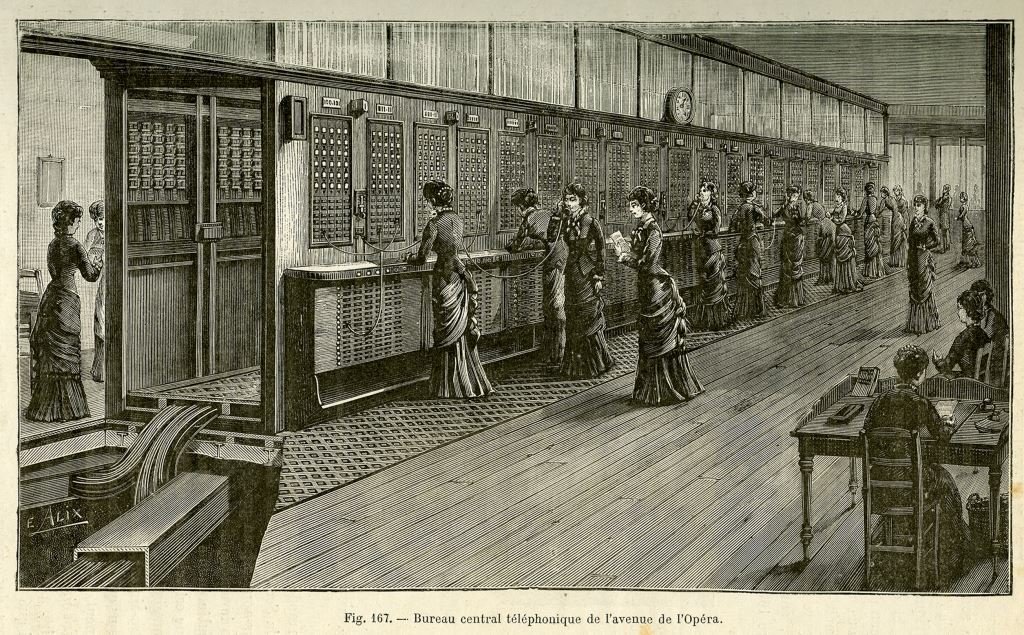 - De operator van de telefooncentrale belt naar de bestemmeling. Als die het gesprek aanvaardt, brengt hij de verbinding tot stand door op het paneel van de centrale de twee lijnen met elkaar te verbinden.