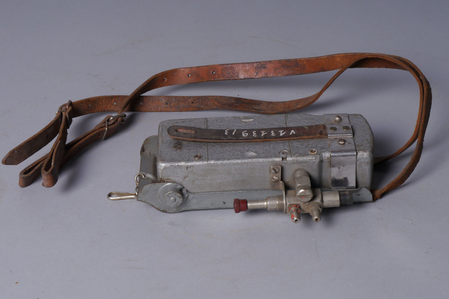 - opschriften: EXPLOSIMÈTRE EV 58 / APPAREIL N° 1233 / LICENCE CHARBONNAGE DE FRANCE / INSTRUCTIONS / TOUTES LES 10 MESURES TIRER SUR / LE BOUTON ESCAMOTABLE LATÉRAL / POUR VÉRIFIER ET SI NÉCESSAIRE / RÈGLER LA TENSION / CONSTRUCTEUR / Cie AUXILIARE DES MINES - DOUAI /