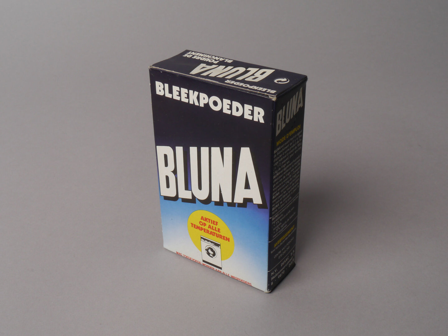 - opschriften: BLEEKPOEDER / BLUNA / AKTIEF OP ALLE TEMPERATUREN / MAG TOEGEVOEGD WORDEN AAN ALLE WASPOEDERS