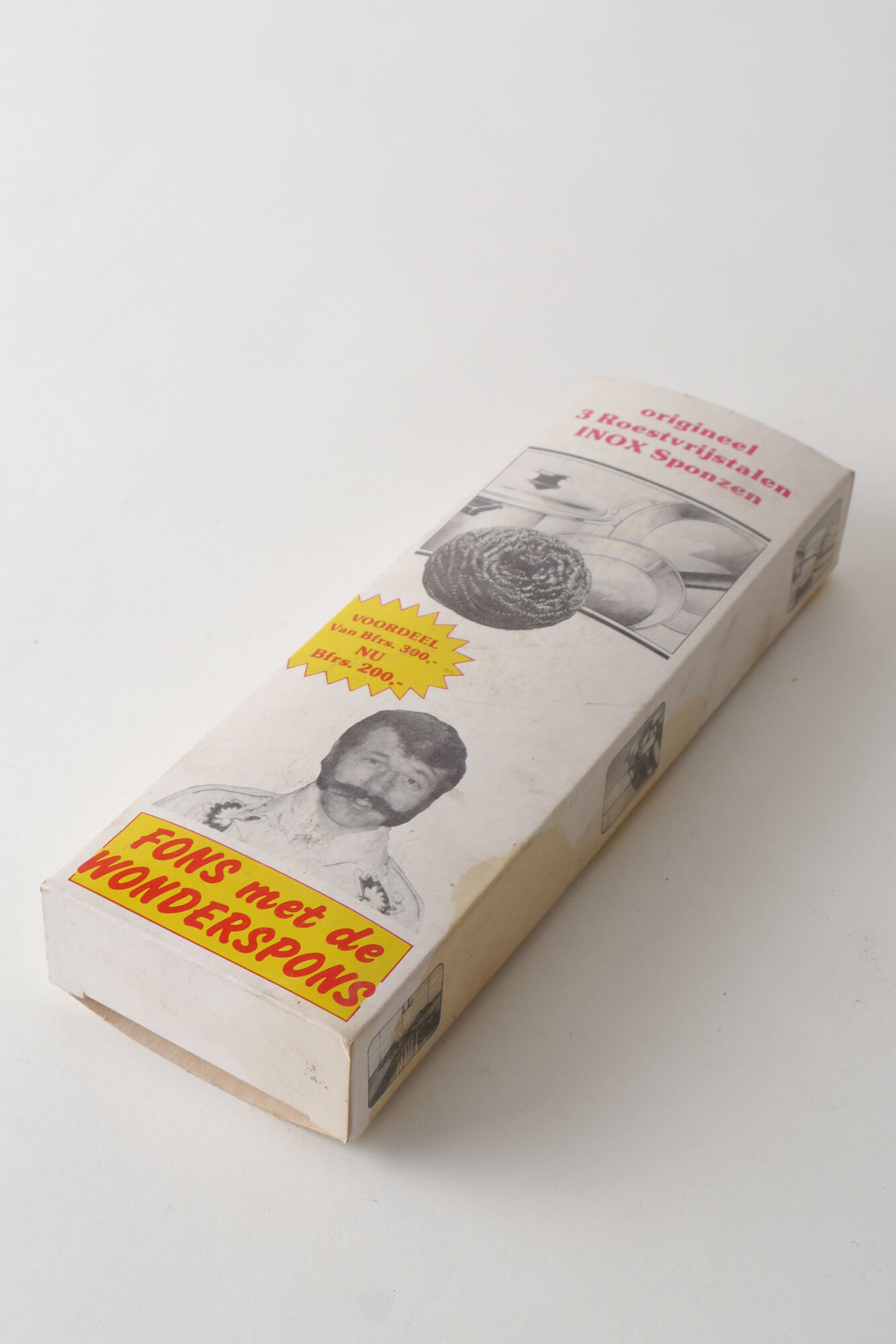 - opschriften: origineel / 3 Roestvrijstalen / INOX Sponzen / FONS met de / WONDERSPONS