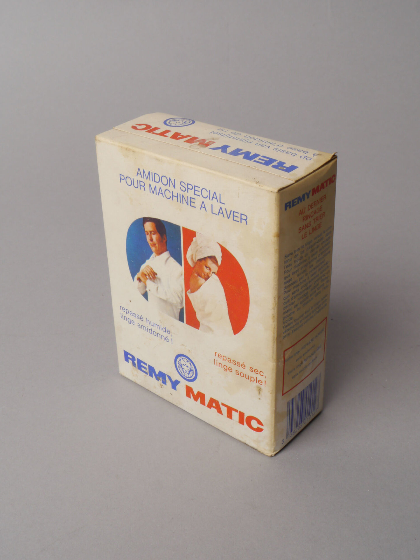 #wonen #karton #2de helft 20ste eeuw #wassen en strijken #stijfsel #benodigdheden strijken #Remy E. & Cie