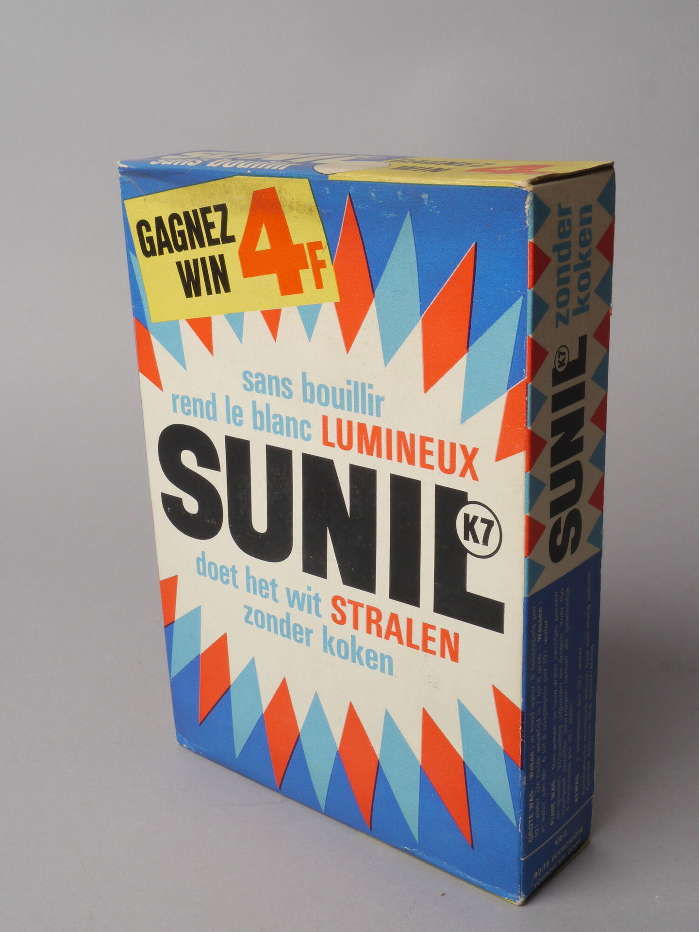 - opschriften: GAGNEZ / WIN / 4F / sans bouillir / rend le blanc LUMINEUX / SUNIL K7 / doet het wit STRALEN / zonder koken // SUNIL K7 / zonder koken / GAGNEZ / WIN / 4F // SUNIL K7 / zonder koken / GROTE WAS. - Weken: in koud water, 6 soeplepels per / 10 l. water. De b