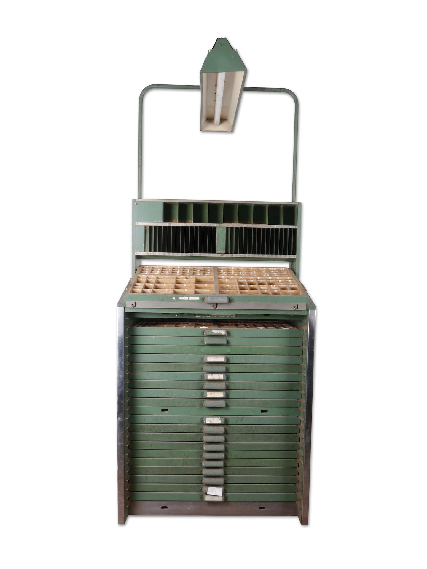 #metaal #hout #2de helft 20ste eeuw #zetterij #hoogdruk #drukkerij #letterkast #meubilair #zetbok