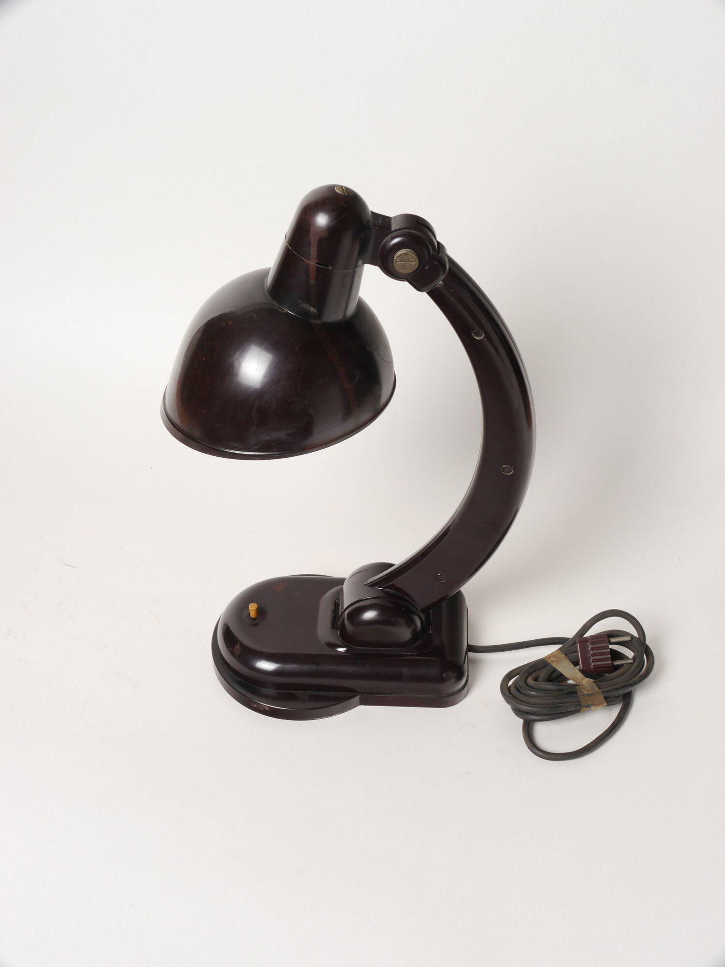 #glas #elektrische verlichting #bakeliet #2de kwart 20ste eeuw #informatie en communicatie #kantoor #Eric Kirkham Cole Ltd (EKCO) #Heinrich Römmler AG Preßstoffwerke #Gummon #Elektrosvit Nové Zámky #Dell, Christian #bureaulamp