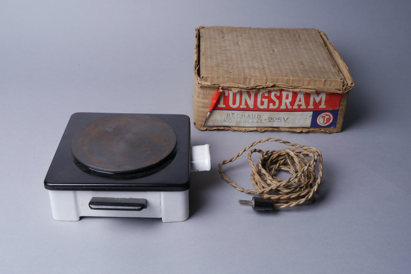 #wonen #elektriciteit #metaal #email #kunststof #karton #2de helft 20ste eeuw #toestellen op elektriciteit #koken #kooktoestellen #keuken #kookplaat #Tungsram #Elekthermax