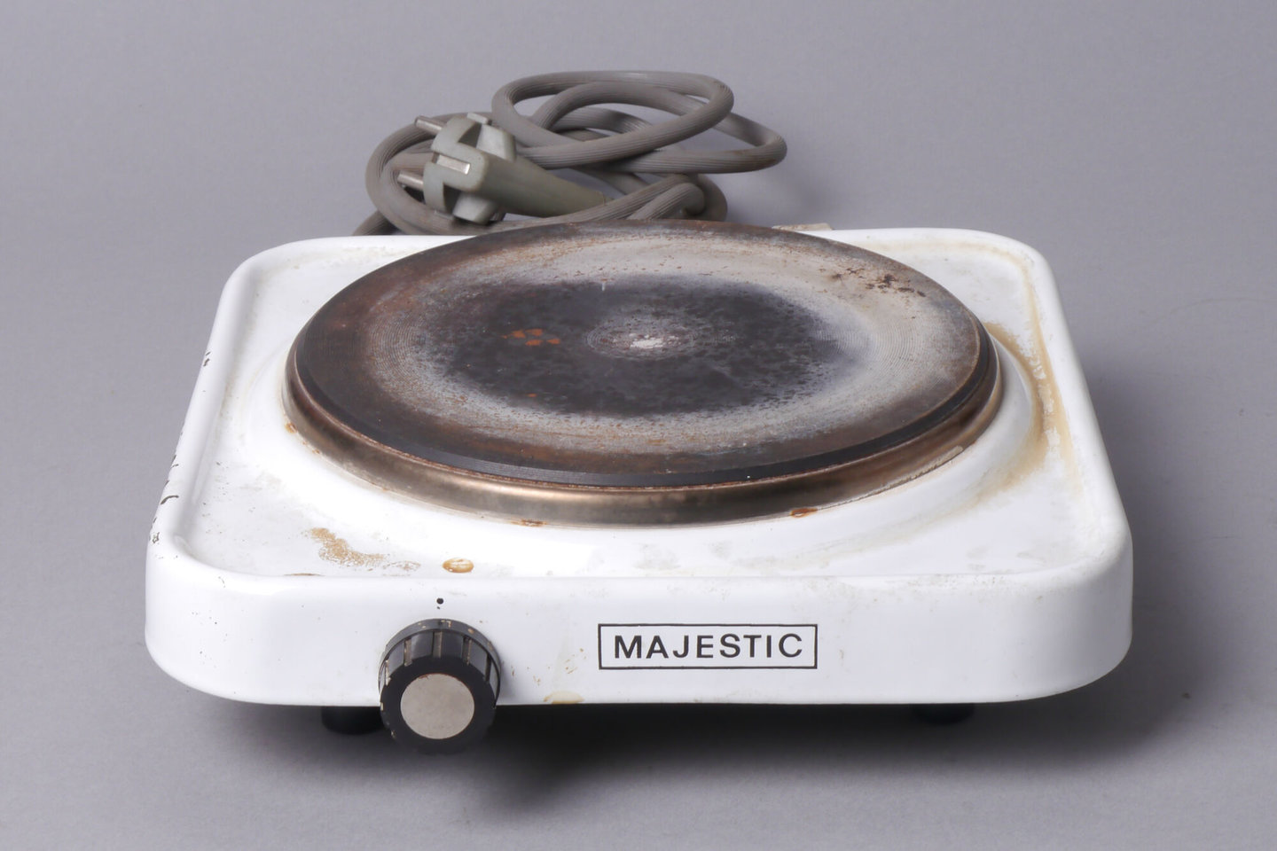#wonen #elektriciteit #email #plaatmetaal #midden 20ste eeuw #toestellen op elektriciteit #koken #kooktoestellen #keuken #Majestic #kookplaat