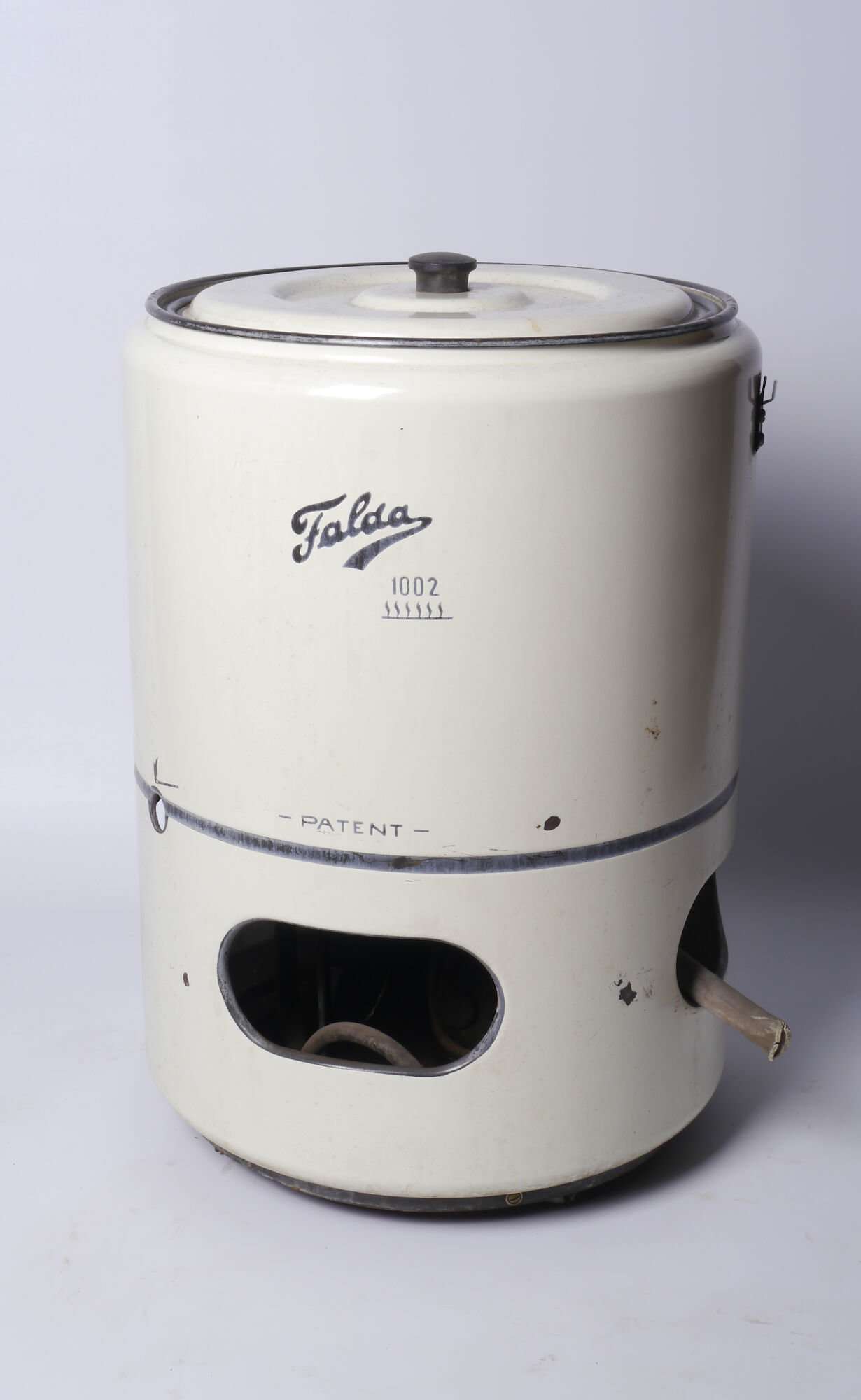 #wonen #elektriciteit #email #rubber #plaatmetaal #toestellen op elektriciteit #3de kwart 20ste eeuw #wassen en strijken #wasmachine #wastoestellen #Falda