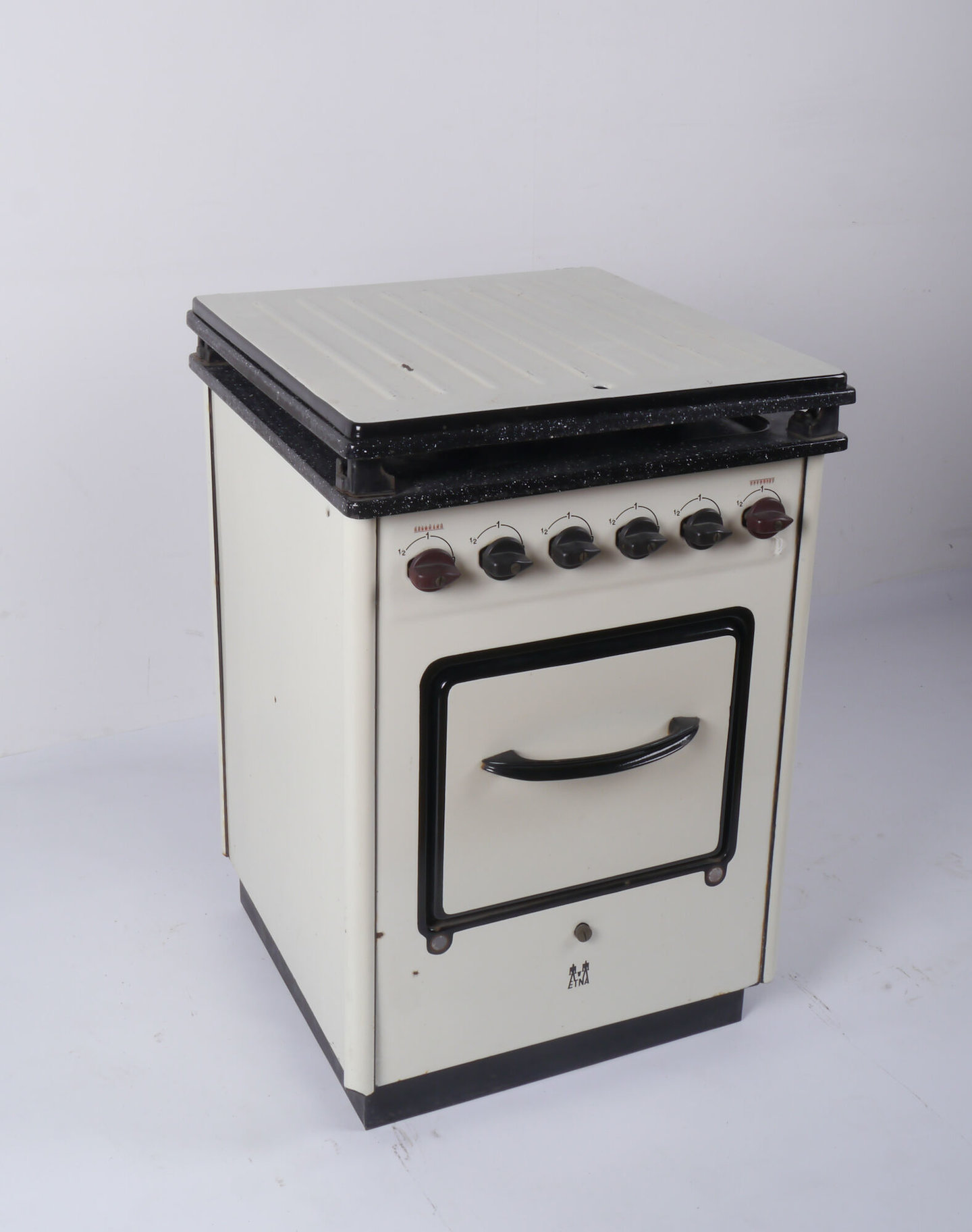 #wonen #gas #email #kunststof #3de kwart 20ste eeuw #koken #kooktoestellen #keuken #toestellen op gas #fornuis #plaatijzer #Etna