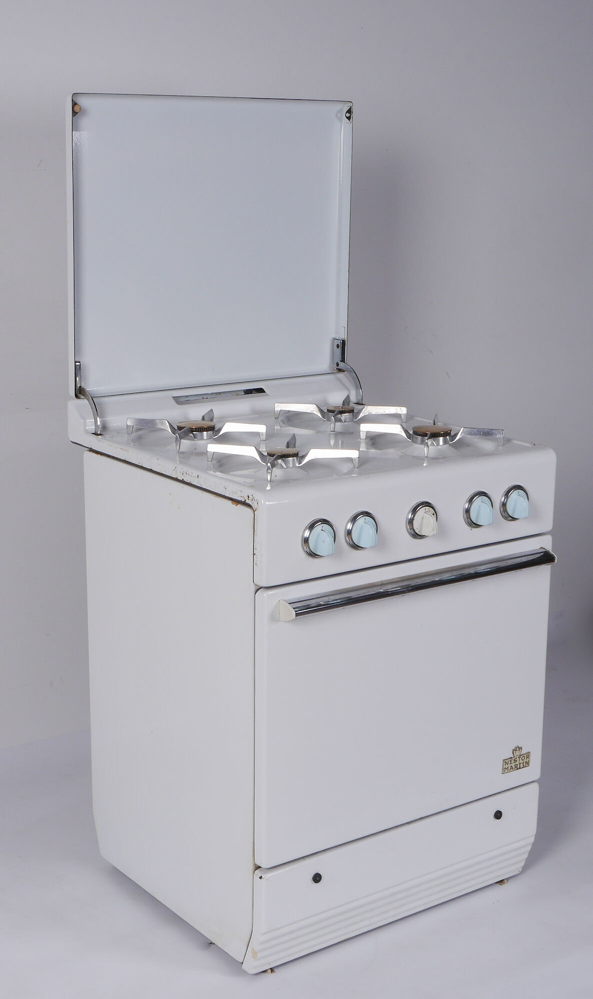 #wonen #gas #metaal #email #kunststof #3de kwart 20ste eeuw #koken #kooktoestellen #keuken #toestellen op gas #fornuis #Nestor Martin