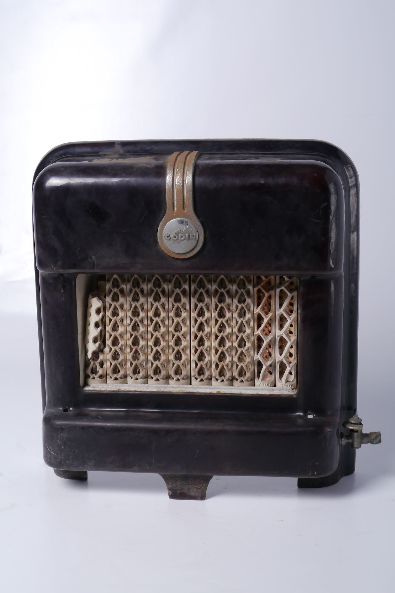 #wonen #gas #email #gietijzer #2de kwart 20ste eeuw #kachel #verwarmingstoestellen #verwarmen #toestellen op gas #Godin #vuurvaste klei