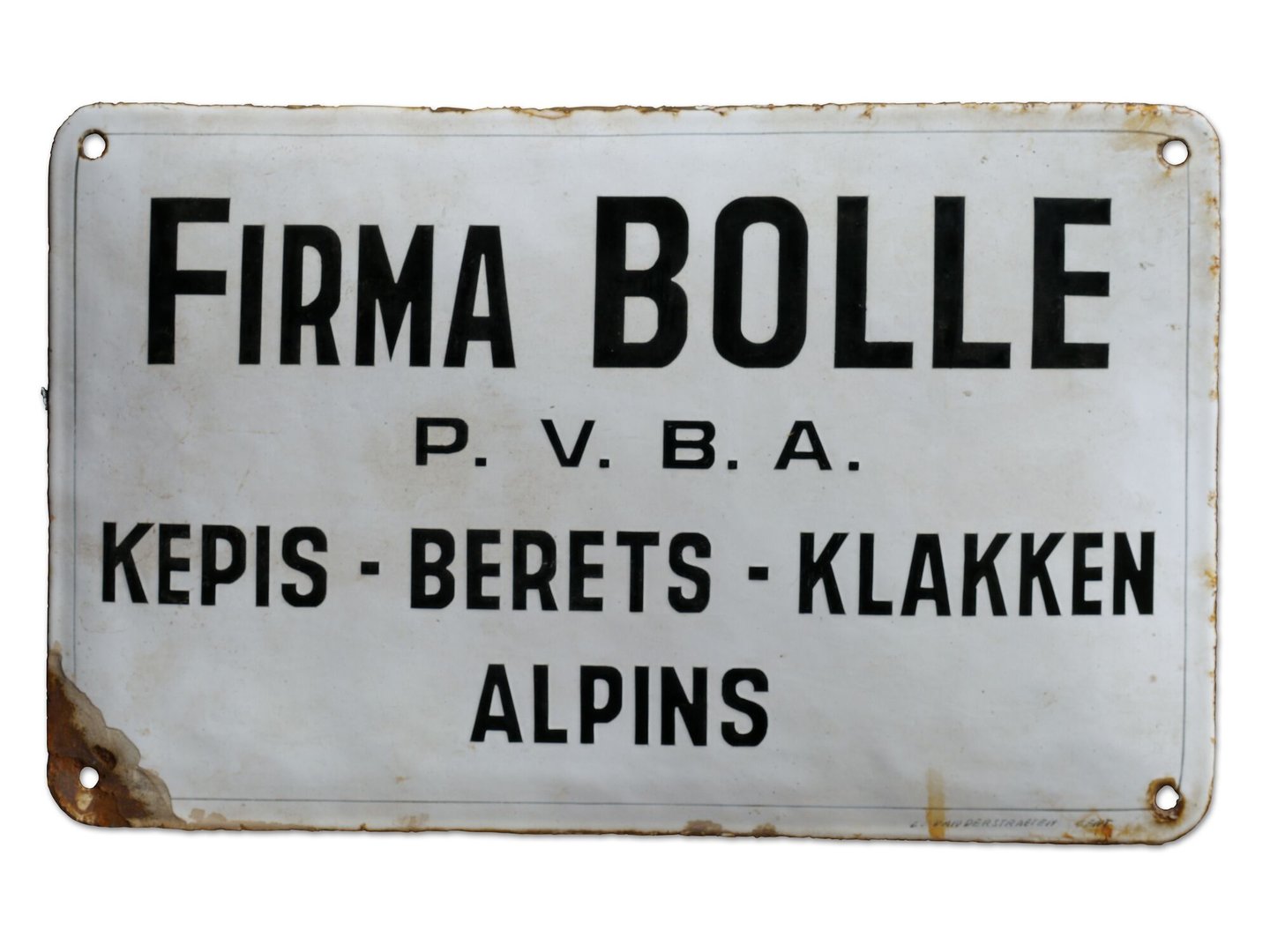 - opschriften: FIRMA BOLLE / P.V.B.A. / KEPIS - BERETS - KLAKKEN / ALPINS / L. VANDERSTRAETEN, GENT