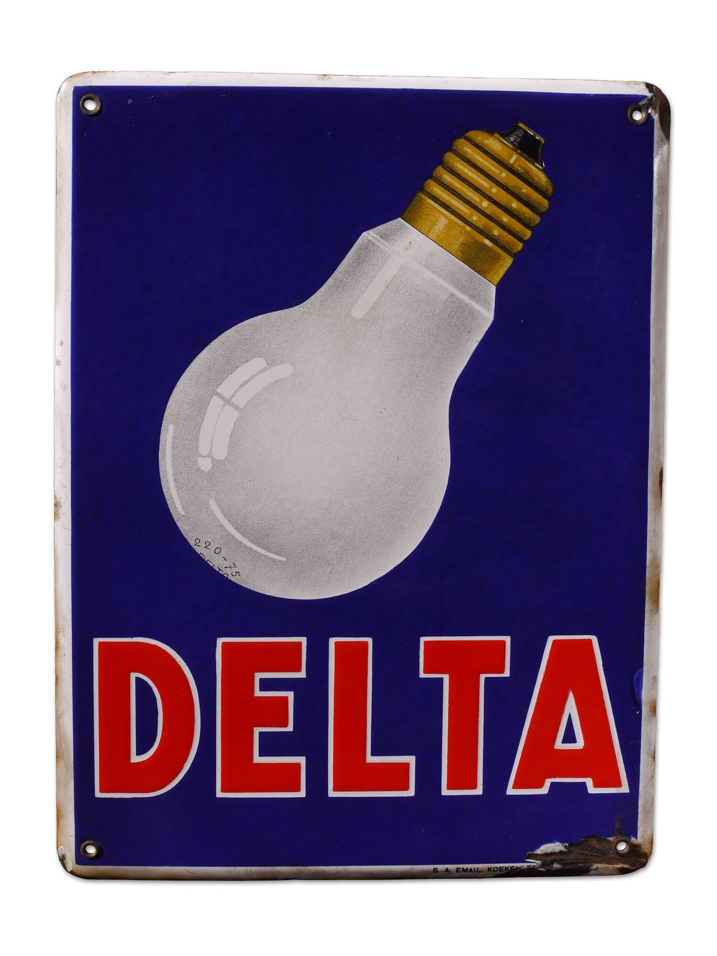#verlichting #elektrische verlichting #metaal #email #2de kwart 20ste eeuw #publiciteit #gloeilamp #informatie en communicatie #emailborden #Emaillerie Koekelberg SA #uithangbord #Delta
