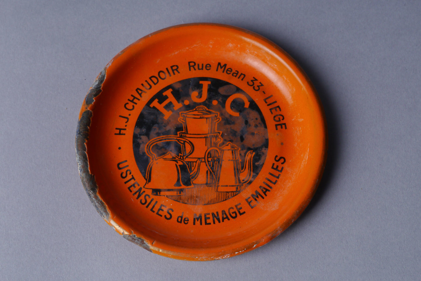 - opschriften: H.J. CHAUDOIR Rue Mean 33 LIEGE / USTENSILES de MENAGE ÉMAILLES // H.J.C.