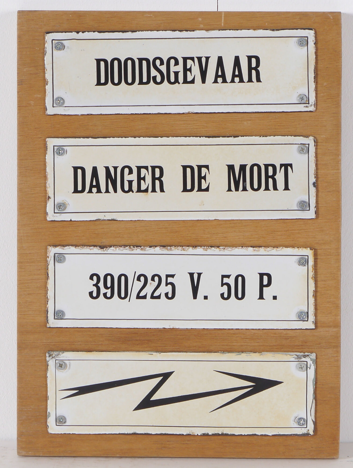 - opschriften: DOODSGEVAAR / DANGER DE MORT / 390/225 V. 50 P