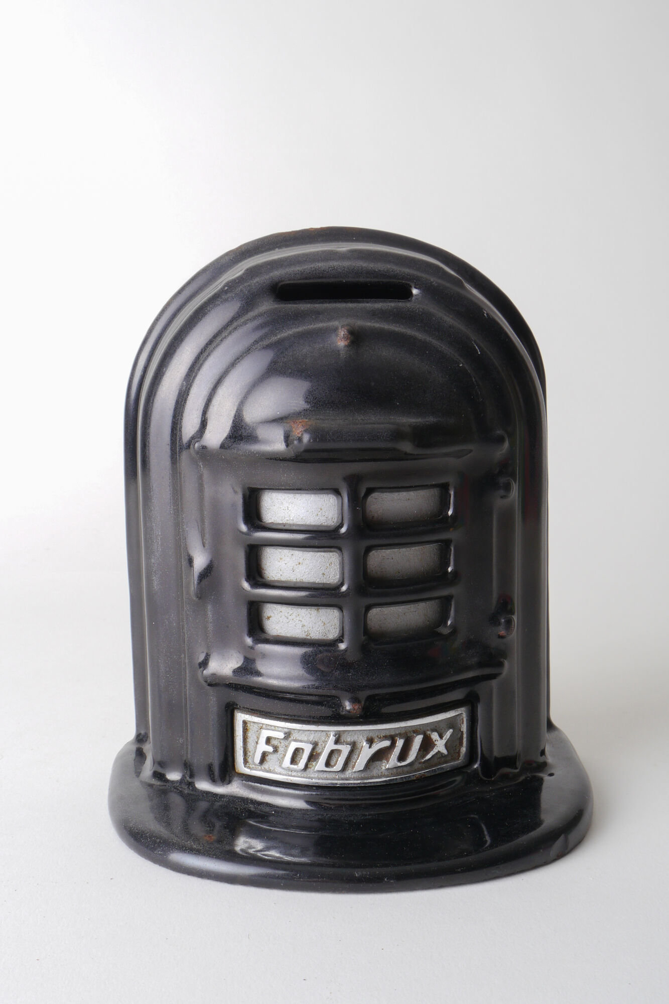 #email #gietijzer #1ste helft 20ste eeuw #publiciteit #informatie en communicatie #kachel #Les Fonderies Bruxelloises (Fobrux) #spaarpot #merchandising