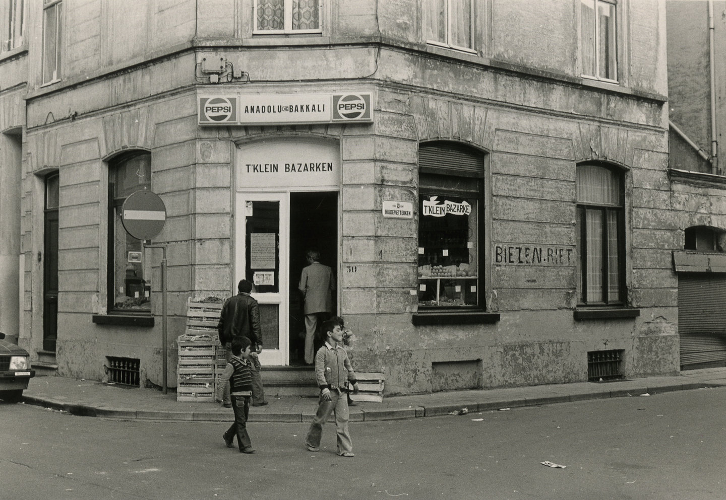 Turkse kruidenier 't Klein Bazarken - Anadolu Bakkali in Huidevetterken, vlakbij de Sleepstraat. Foto Gustaaf Van Damme, 1983, F10000-0998