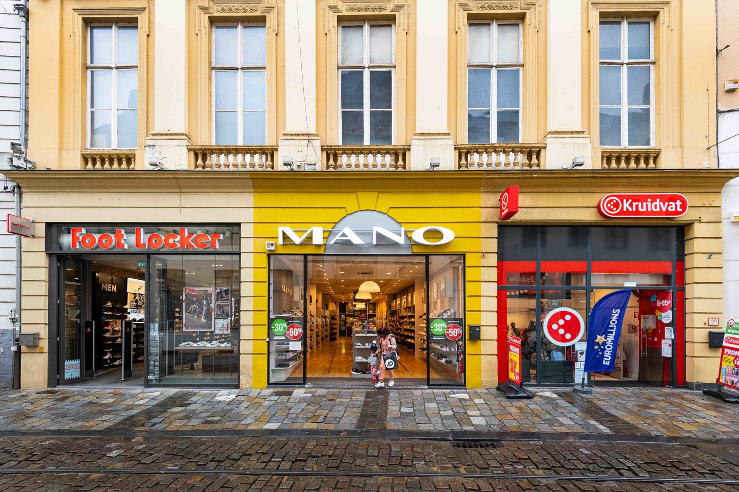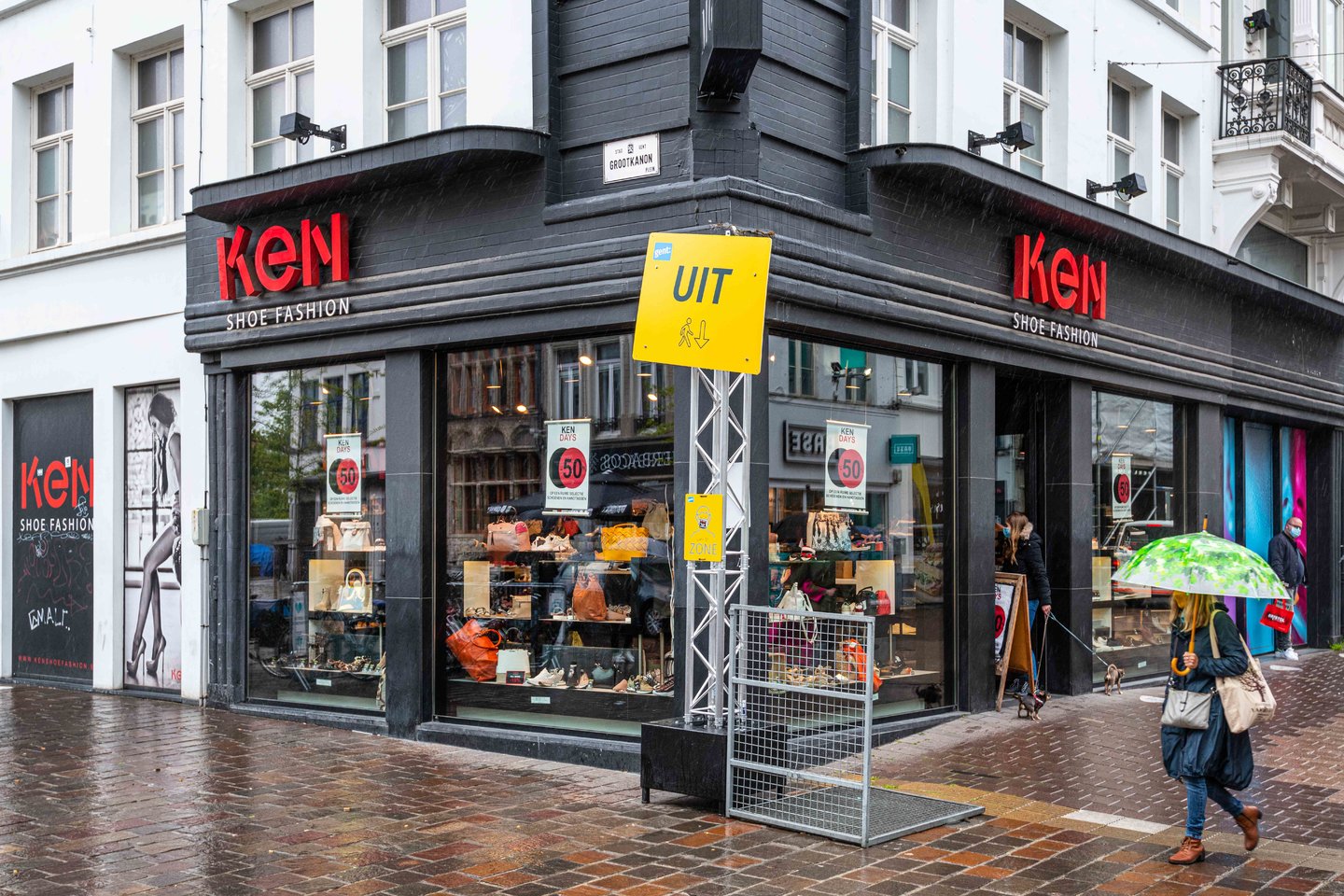 Gevelrij met filialen van internationale winkelketens in de Veldstraat. Foto Dirk Panier, 2021, F10396-011