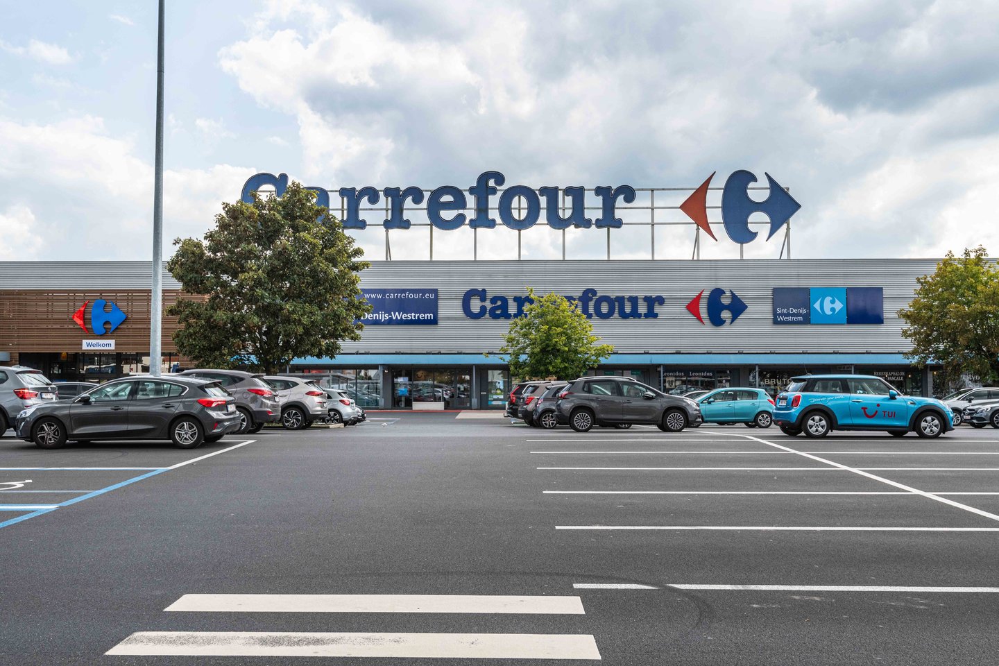 Hypermarkt Carrefour, voordien SuperBazar (onderdeel van de groep GB) aan de Kortrijksesteenweg in Sint-Denijs-Westrem. Foto Dirk Panier, 2021, F10396-684
