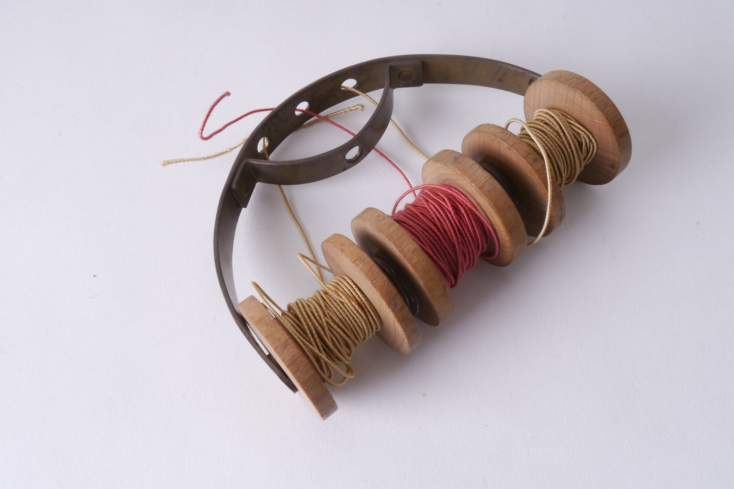 #hout #gele koperlegering #textiel #interieurtextiel #passementerie #gereedschap #benodigdheden passementerie #De Backer Passementerie
